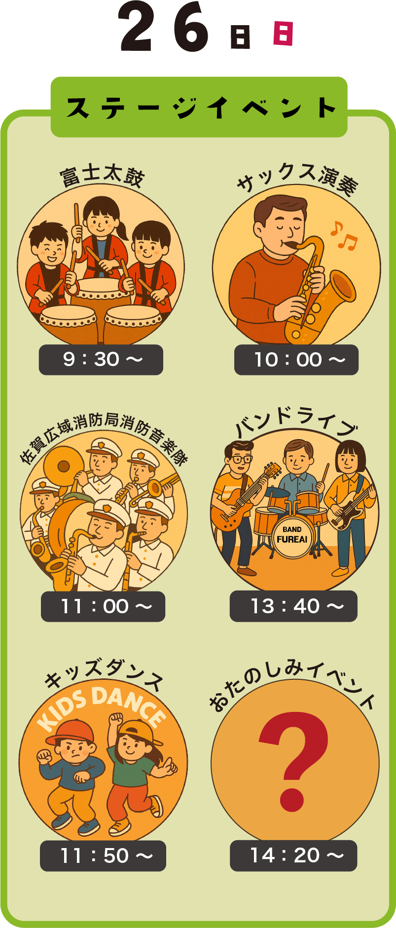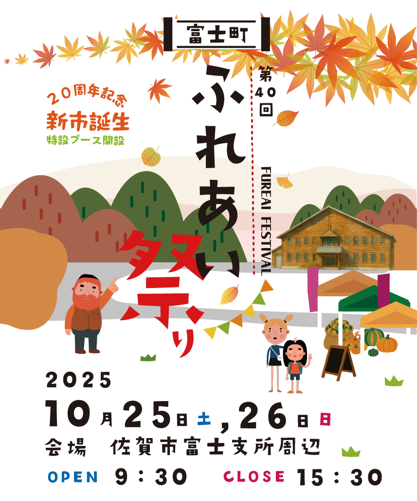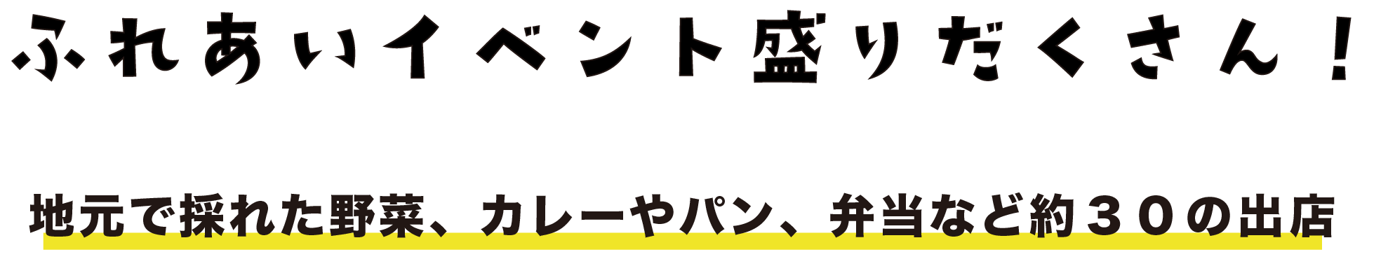 地元で採れた野菜、カレーやパン、弁当など約30の出店があります。お買い物でスタンプを集めると、富士町のおいしいお米・特産品の他、 エコバックやポーチなど佐賀バルーナーズノベルティグッズがもれなく当たります。 皆さん、ぜひ富士町ふれあい祭りへお越しください!